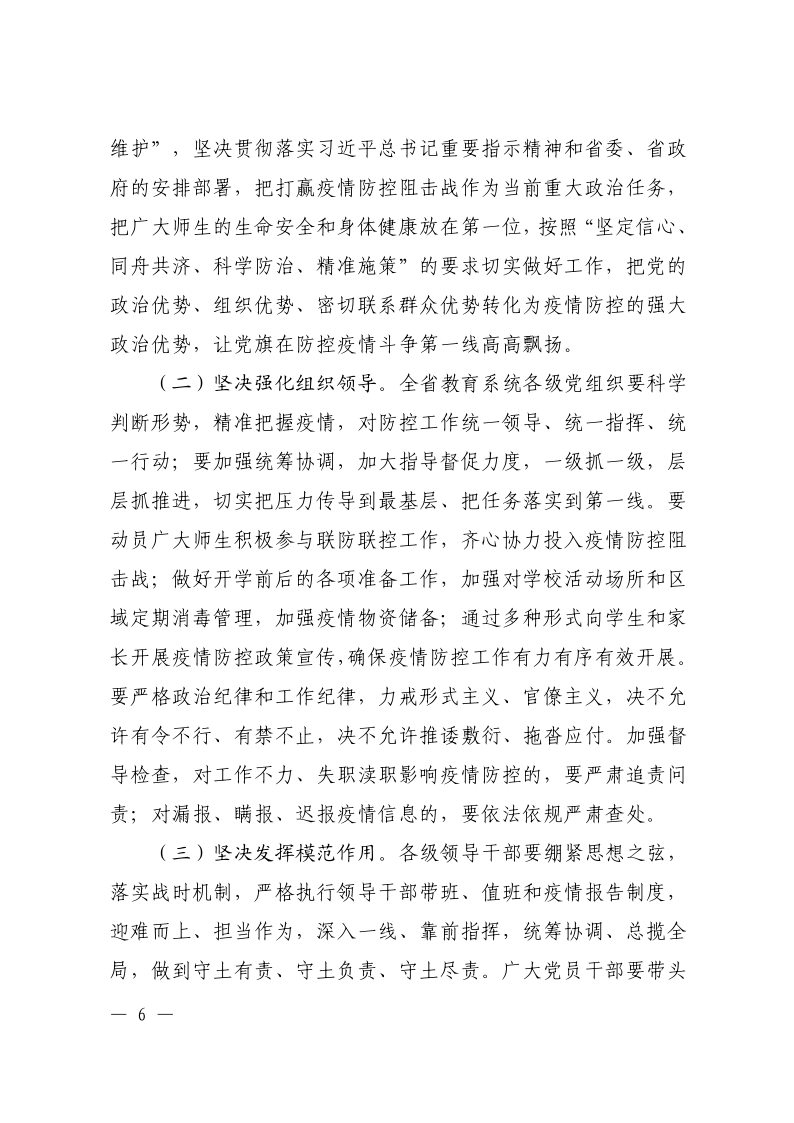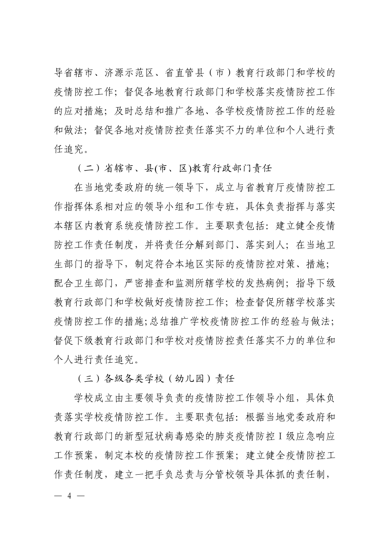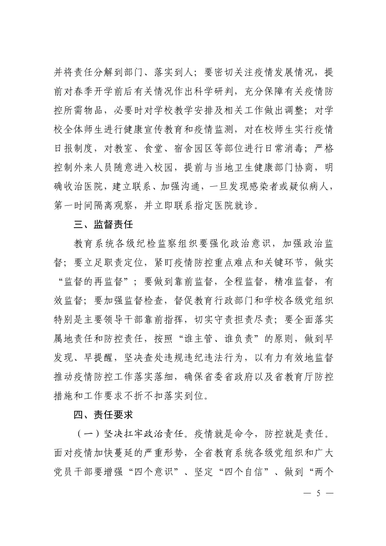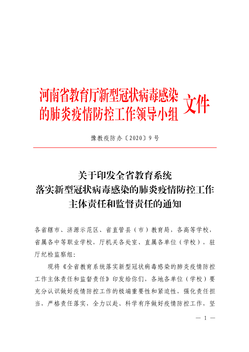 关于印发全省教育系统落实新型冠状病毒感染的肺炎疫情防控工作主体责任和监督责任的通知