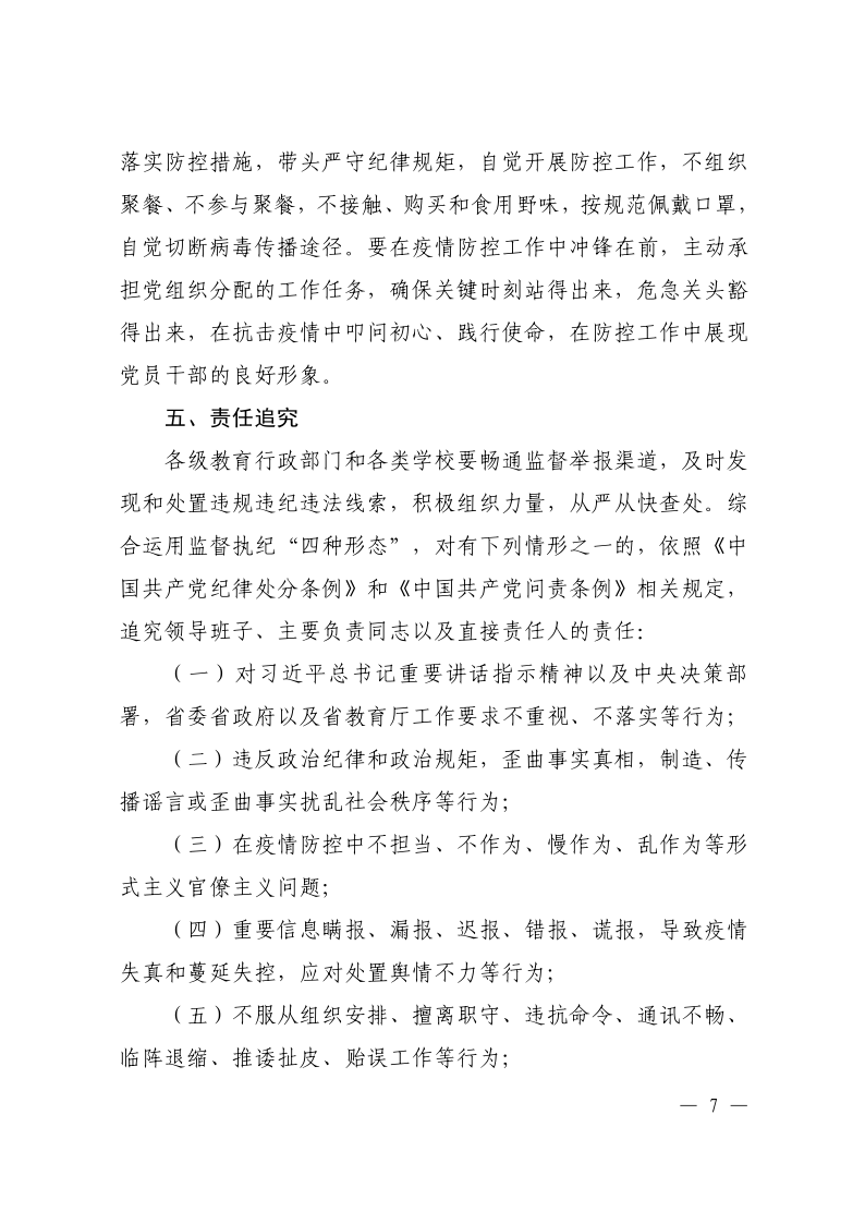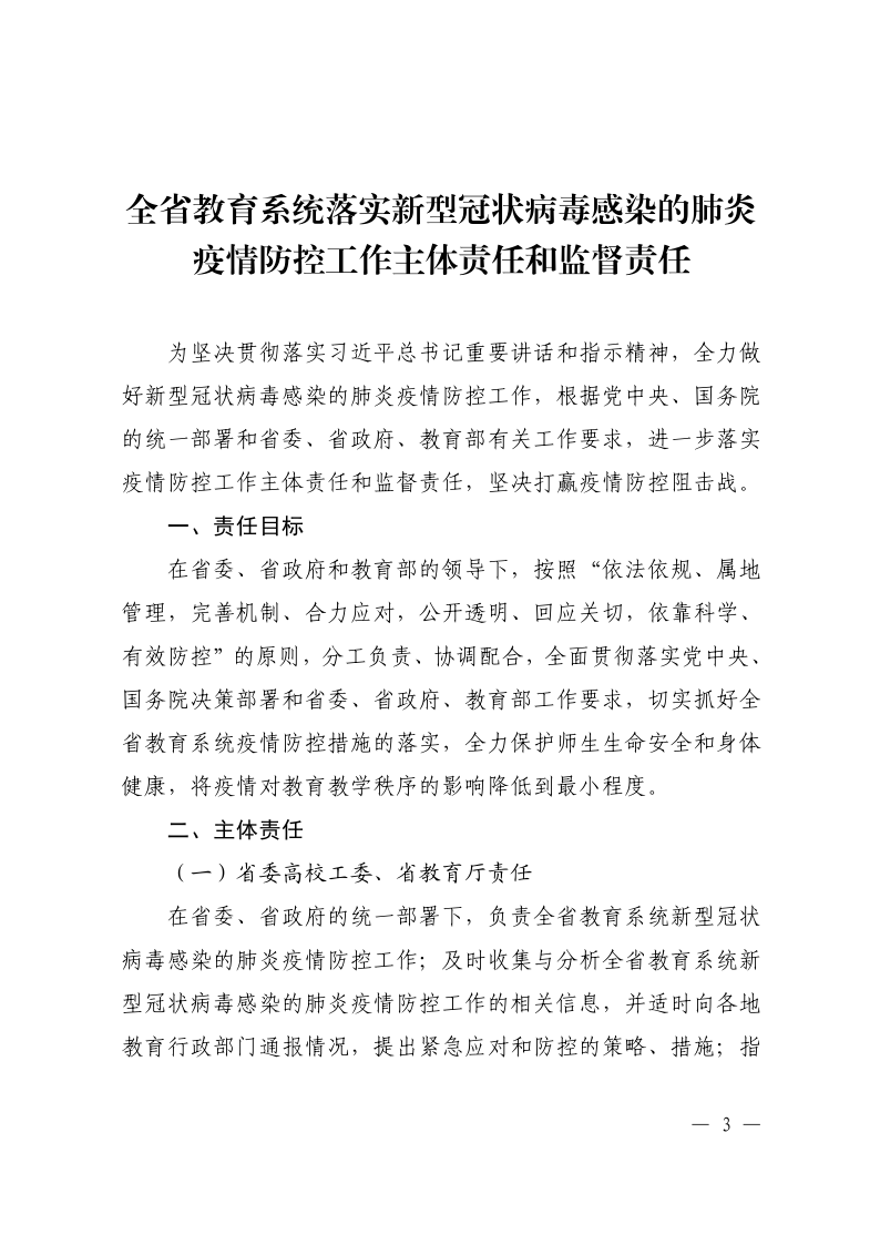 关于印发全省教育系统落实新型冠状病毒感染的肺炎疫情防控工作主体责任和监督责任的通知